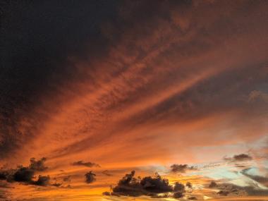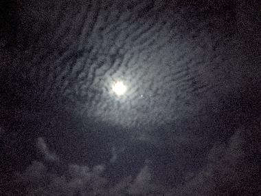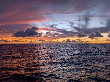 Man, that “primary” autopilot surely is leaving much to be desired. It stopped working again. I’m not sure yet what it is; I’ve received some information to run some troubleshooting (from Jerome of Sailutions, NKE guru, and Phil at PYI, Inc., who imports the Lecomble & Schmitt drives). I’m now running on the secondary AP. Note that I have spares, and a third fully functional autopilot. So we’re fine. But I do prefer to use apparent wind mode when we keep crossing lines of clouds with the wind shifting 10-20 degrees and bouncing up and down between 8 and 12 kts, and I’m trying sail upwind: I have a bruised boom to nurse until we make it home! We sailed under first reef all day and part of the night. On a side note I tried the gennaker today but we were to close winded for its useful range, I think. All day we’ve been sailing along Big Island’s big domes in light wind, making slow progress, trying to escape Hawaii’s grip. I’ll add a fee sunset pics. It’s night time now, I’ve cracked off the sheets as the wind veered a good 30 degrees, and down to second reef too.