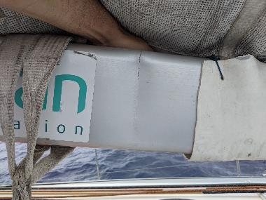 Rain, rain, rain. Heavy, light, straight, sideways, short lived, or like now, everlasting. That’s been on the menu du jour since my last report. Little by little, by riding baby squalls, this morning, it felt like I had escaped the doldrums. Not so, I’m not sure what you call what I’m stuck in but it’s wet and slow going, with heavy banging in swell on the bow, and the sails slatting. Maybe by tomorrow we’ll be in better sailing conditions. I’m still trying to figure out my next step wrt the boom damage. For now, we’re sailing under-canvassed, if that’s even a word. Things are also slow going inside the cabin as the skipper is being adjusted to the reality of what he’s signed himself up for. There’s been a lot of work done to get some real sleep. I sleep with the hatch open so that if wind picks up or it rains, I can hope that it’ll wake me up, and I can try to harvest some forward momentum from the baby squalls. Quick note: I’m not asking for monster squalls! Just came back from a few trips outside. The wind is gone again. I took a reef out of the mainsail, and discovered a batten cap stud had come unscrewed. So I had to fix that. Then I noticed that the batten of the genoa was lying on the foredeck. So I’ll have to look at that later on. I’m just hoping to get out of the doldrums now. Really.