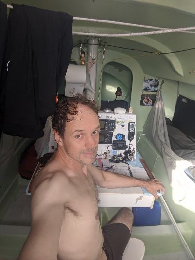 We’re into day 4. As I settle in this new routine, I looked at the video I posted right before sailing under the Golden Gate Bridge. I now see that I was fairly stressed out. In fact I was also tired because of two difficult nights before. I carried on this stress for the first two days. I now feel better, although I also realize how long this voyage will be, if it is to be successful. For now that is okay with me. Of course life on the boat is demanding. It’s always moving always noisy. And there are always risks involved such as hurricane Marie. There will be highs and lows and highs again! Such is life … This morning to help center my mind I did 5 minutes of Tai chi. Similarly I did a few push-ups and squats to keep the body moving. It is well known that sailors have skinny legs. I listen to music often. And I do spend a lot of time on my phone to communicate, run weather routing exercises, look at forecast, and generally check how certain boat systems are working.