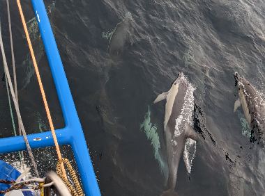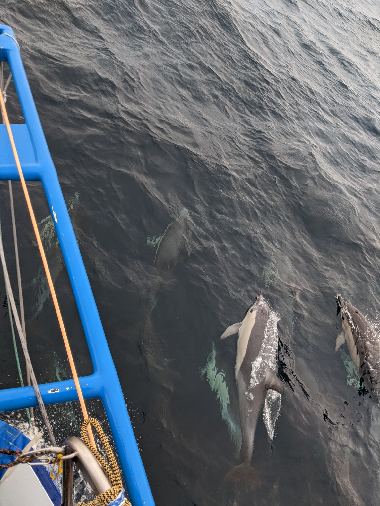 Wednesday afternoon the wind picked up, and Changabang did what she does best: sail fast. By 10:30PM we were in Pillar Point Harbor after having emerged from a long day of fog. Family and a friend were waiting (thanks, Milt, for driving all the way!), with lights on as I slowly motored near by, for a “victory lap”, and then onto docking (where a Belgian treat was waiting; thanks Michael!).