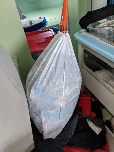 Picture: what’s in a bag? Five weeks of trash! Pretty compact, eh? Better be, imagine 6 months of trash!